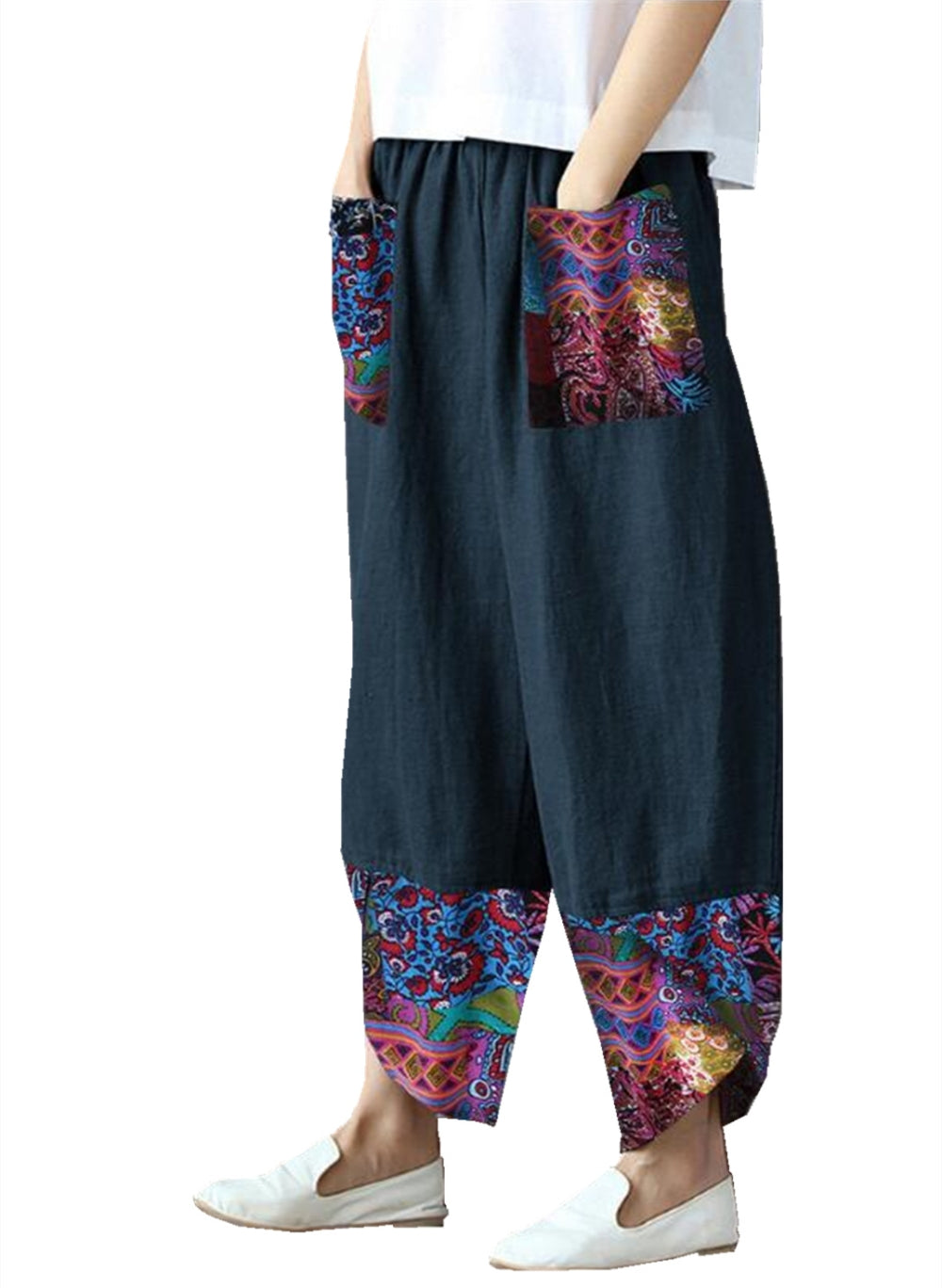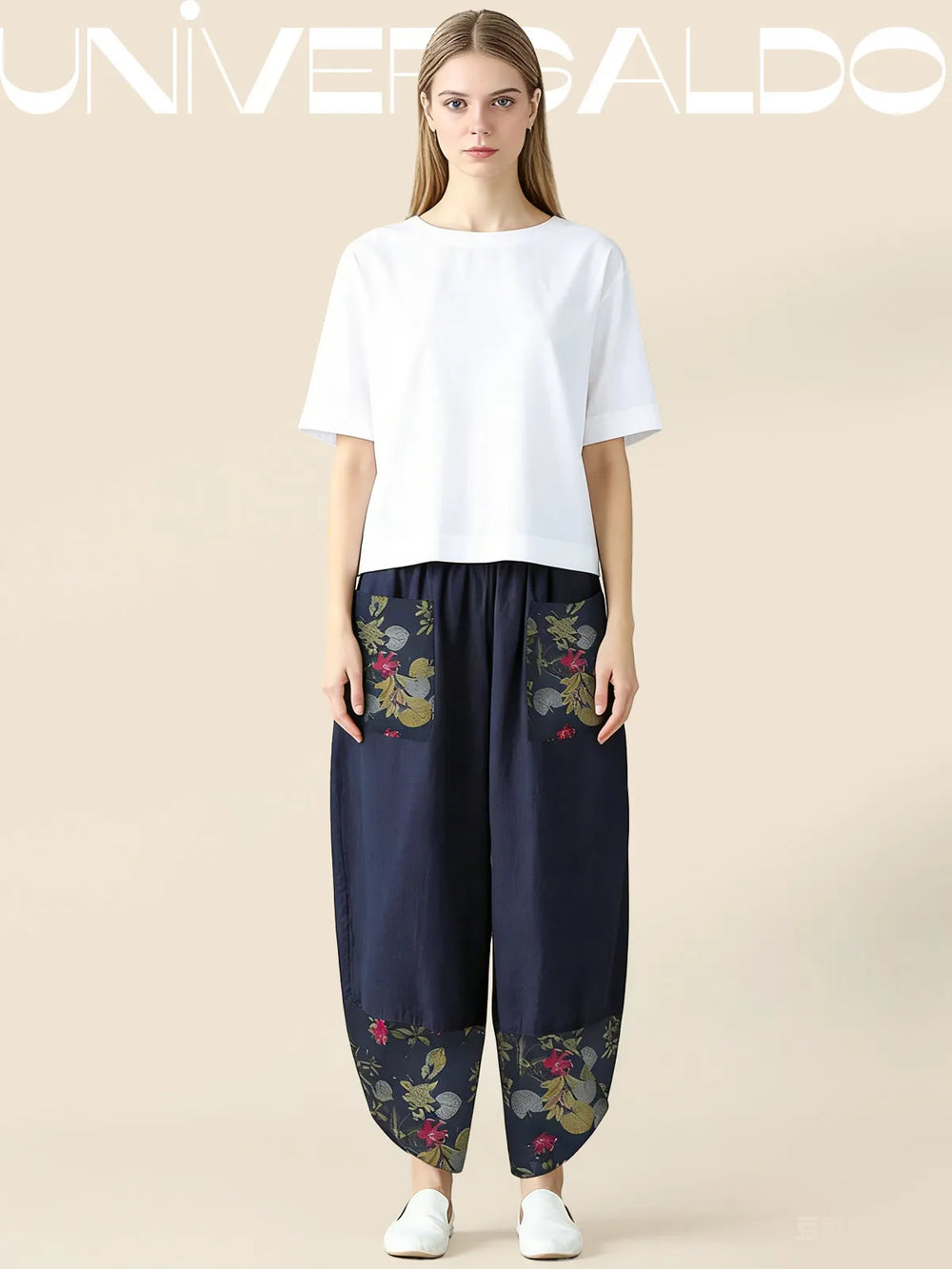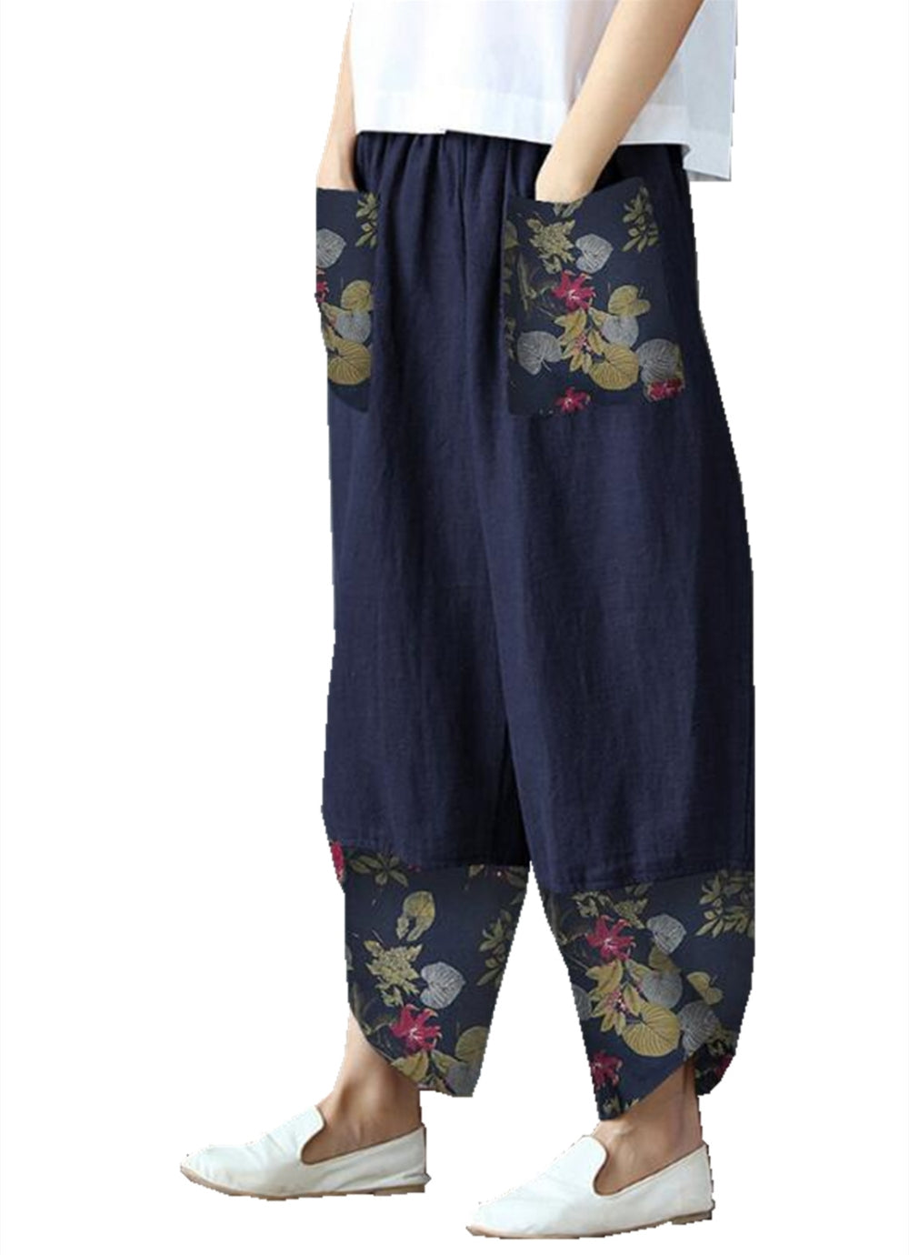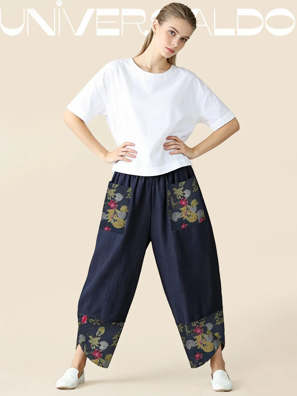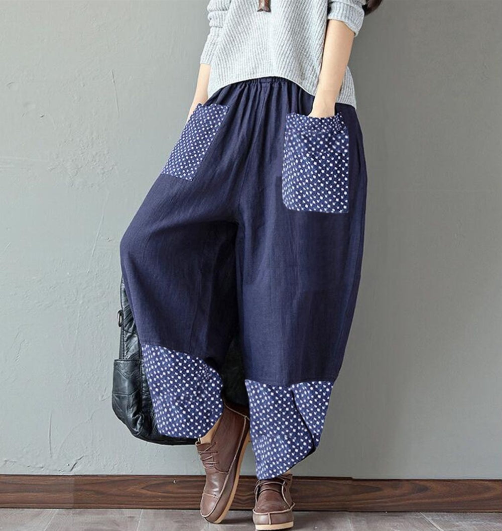 Нови широки панталони от памук и лен с щампа