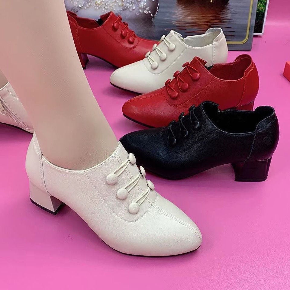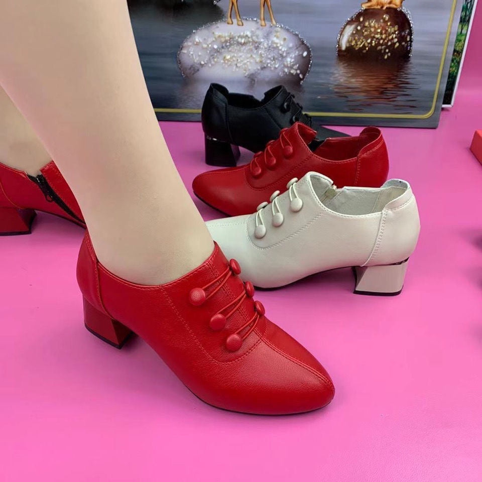 💥🔥Модерни ежедневни обувки от естествена кожа с средна височина на тока
