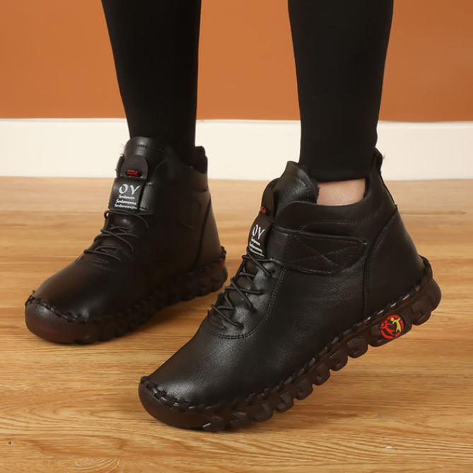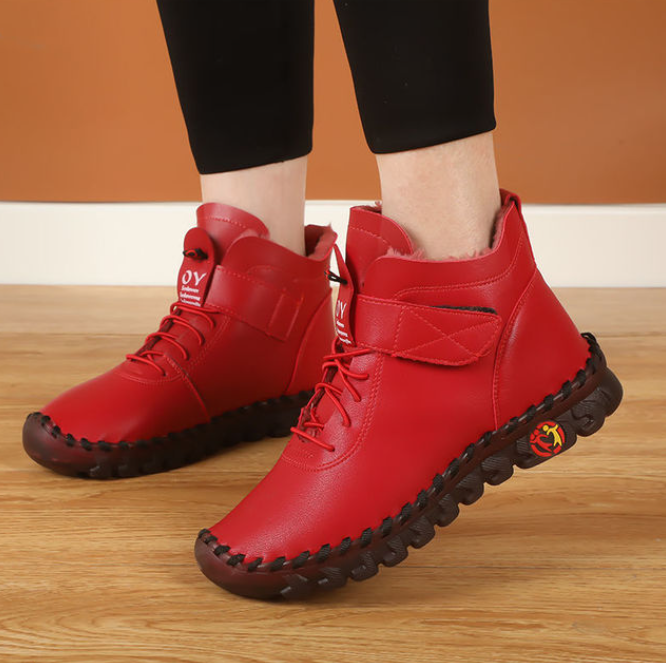 Дамски къси кожени водоустойчиви зимни снежни ботуши