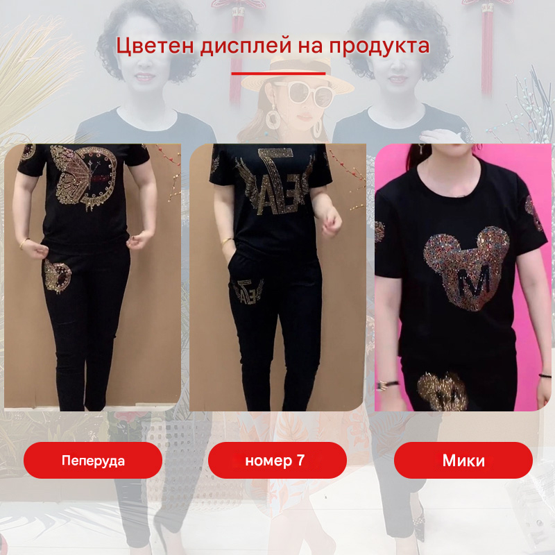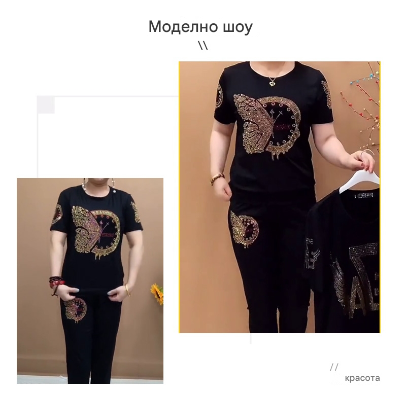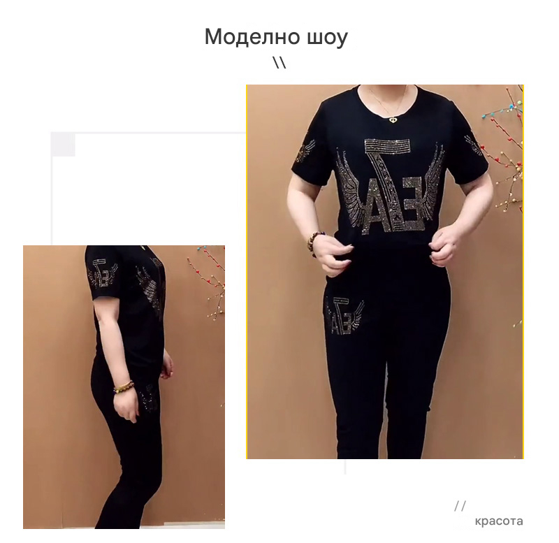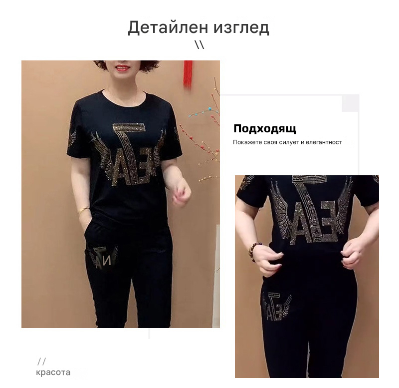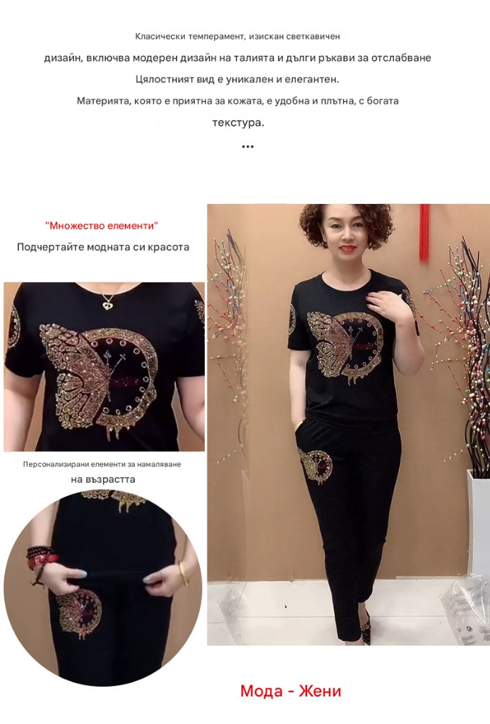 най-продавани【M-5X】]Дамски топове и панталони с кристали в големи размери