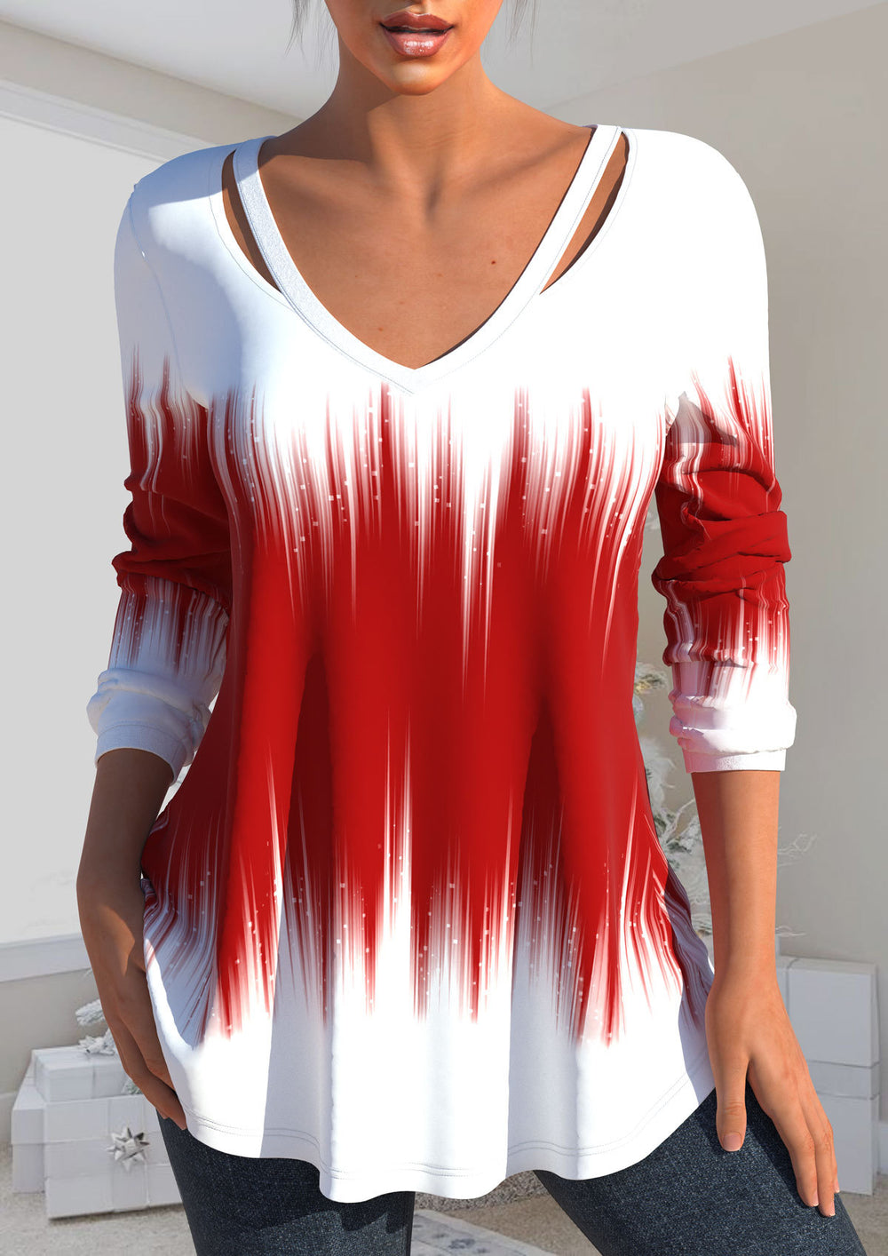 🎅Коледна промоция🎄Дамски топ с дълъг ръкав и V-образно деколте с щампа
