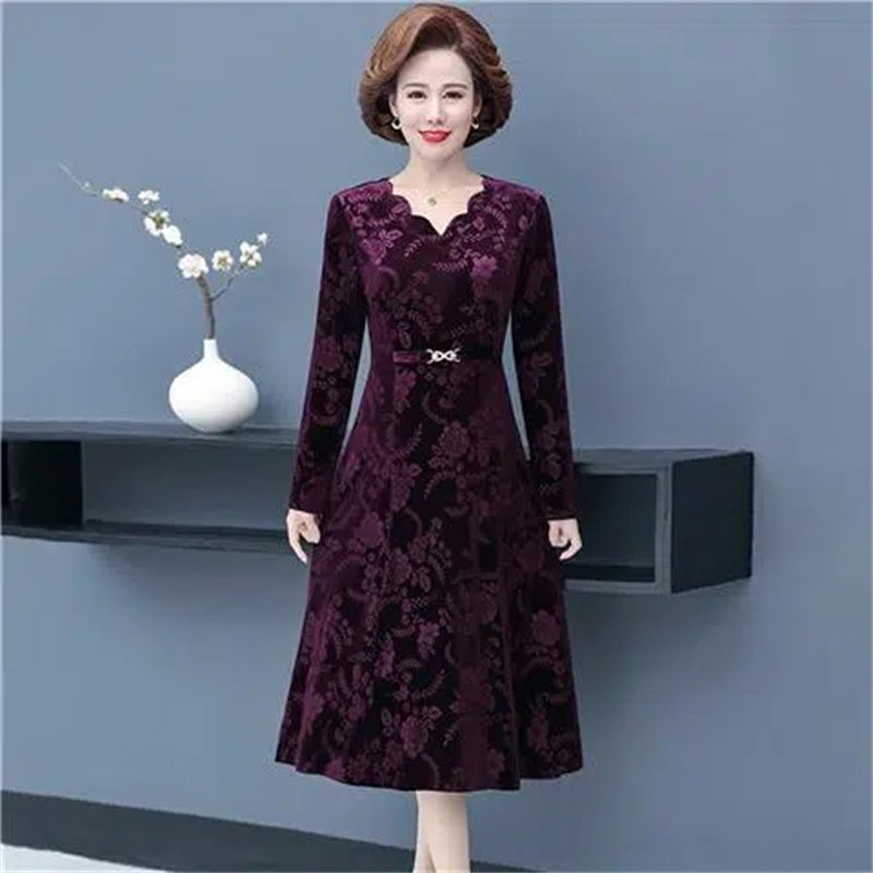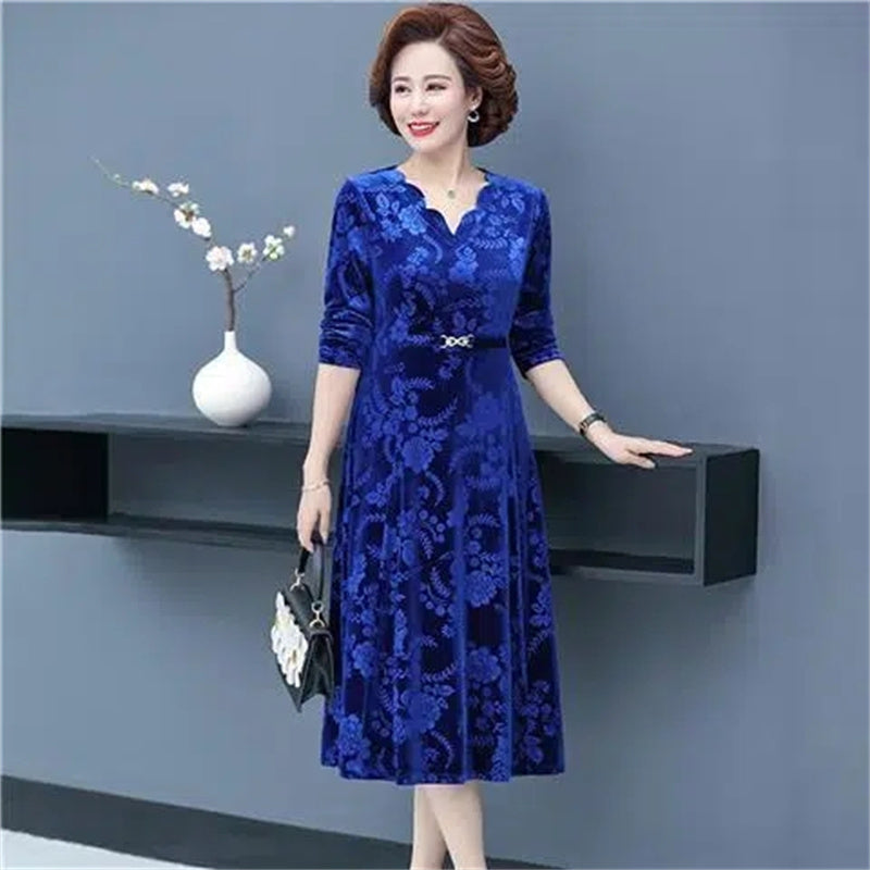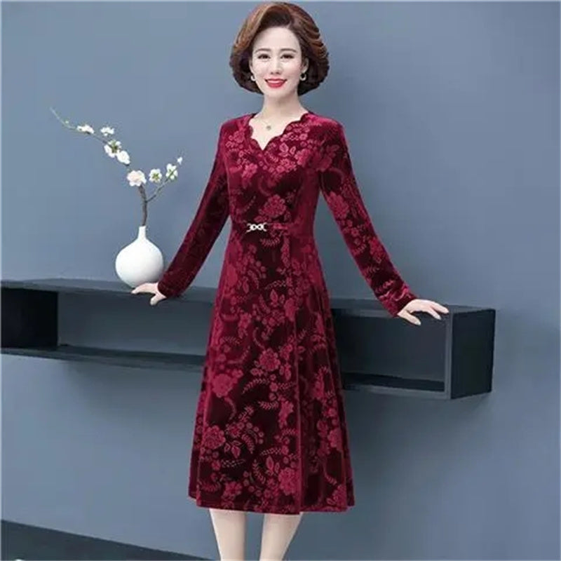 🔥👗Златиста кадифена рокля с дълъг ръкав и V-образно деколте