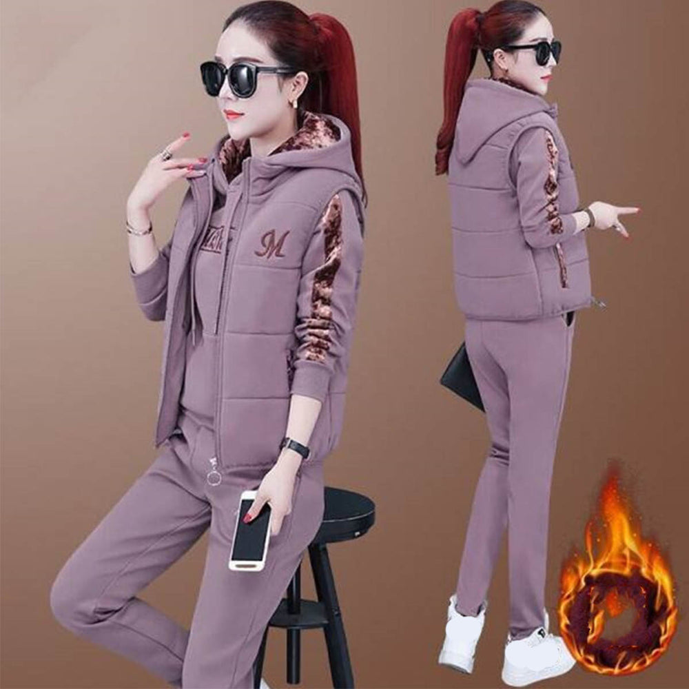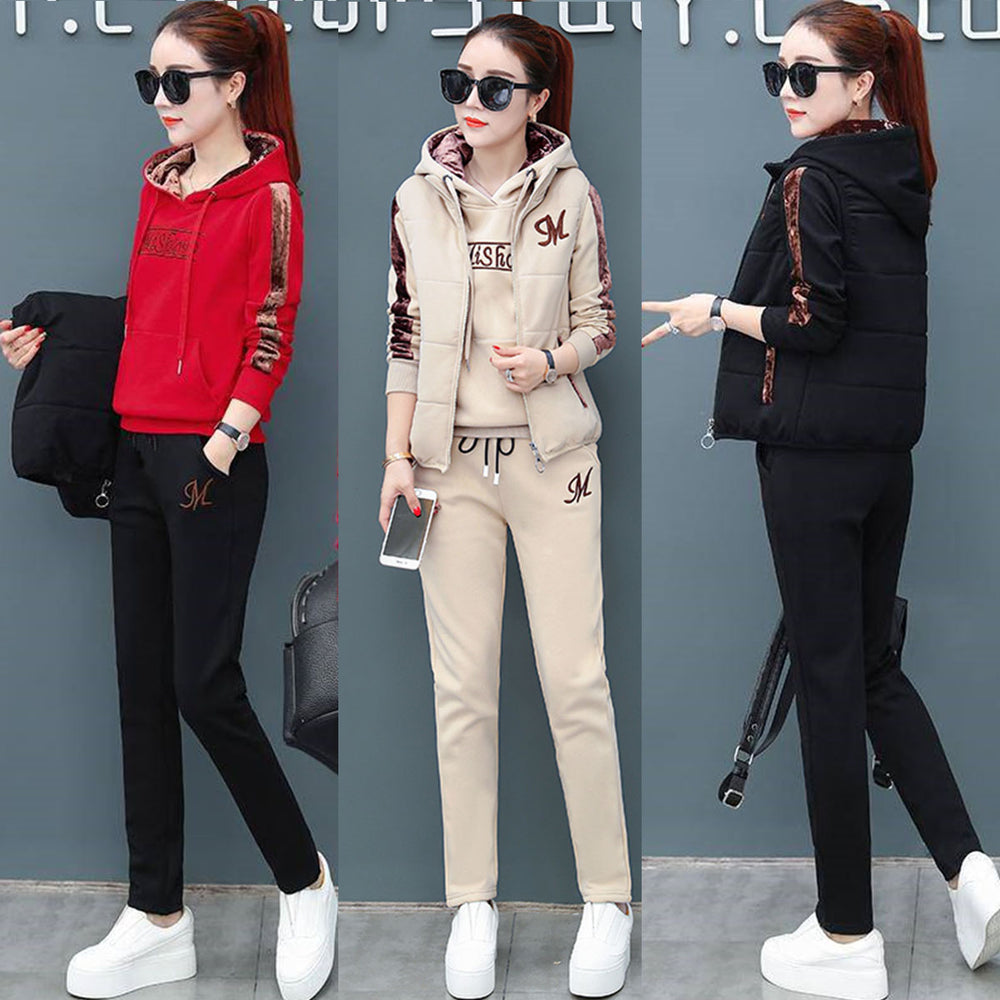 🔥【Панталон + суичър + жилетка】 Нов стил дамски топъл кадифен костюм за спорт и свободно време