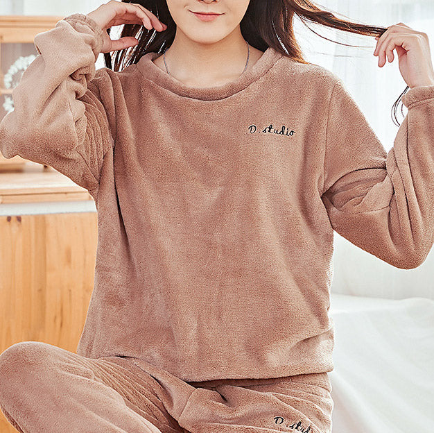 🔥【Топъл плюшен комплект 40-90 кг】🔥Пижама от коралов полар, удебелени ежедневни дрехи за дома, модерен и удобен комплект пижама