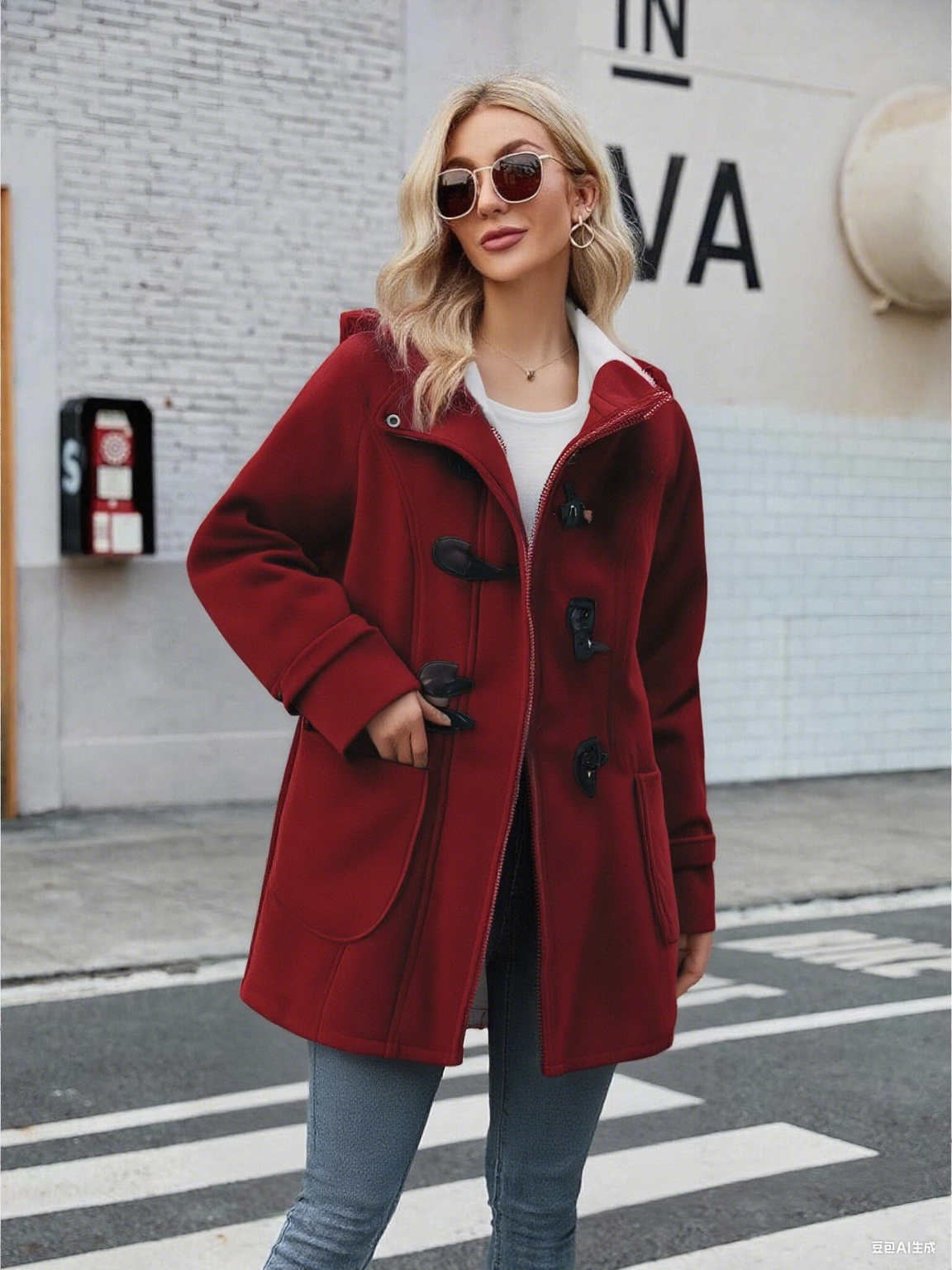 🔥Последен ден 50% отстъпка - Топло дамско яке с качулка, миди дължина