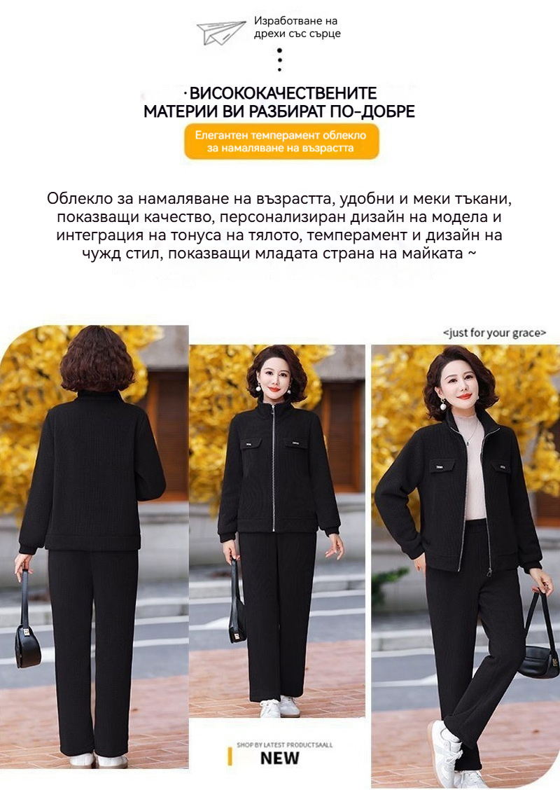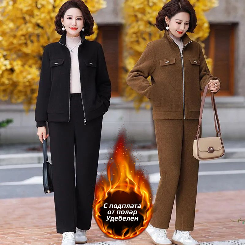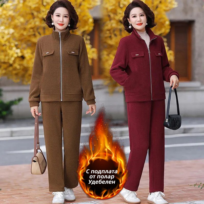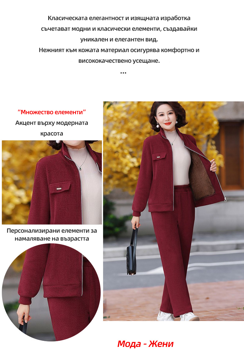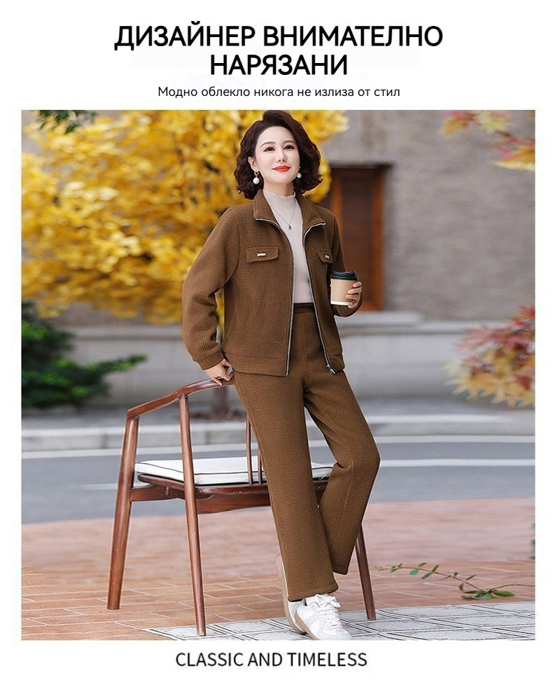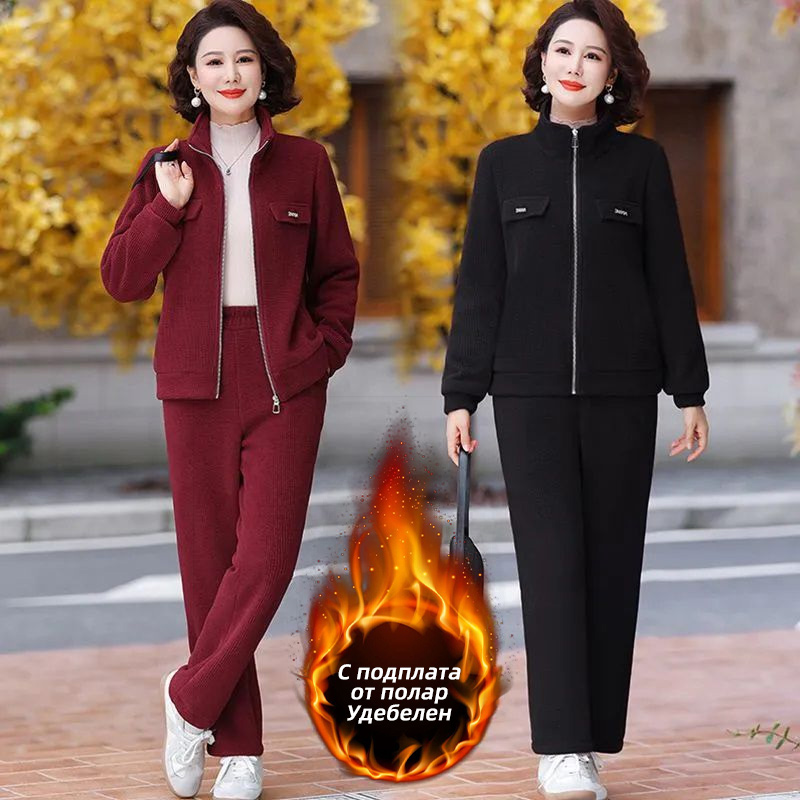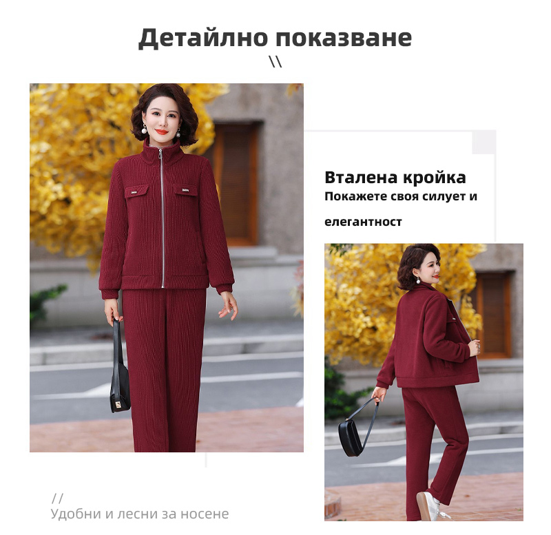 🔴💥【M-4XL】Дамски ежедневен кадифен костюм с удебелени елементи (сако + панталон)
