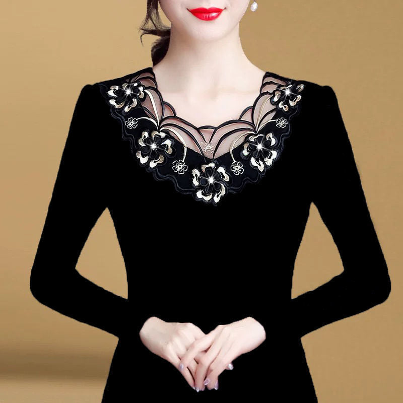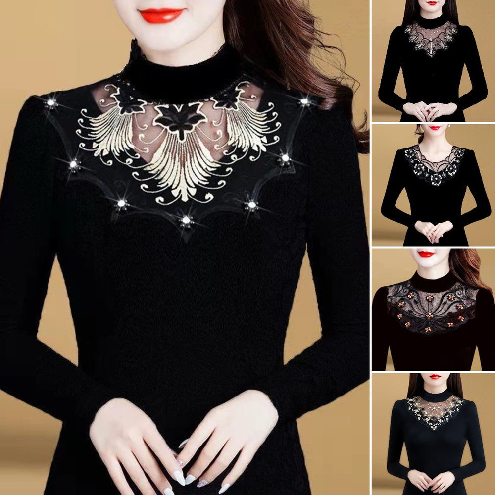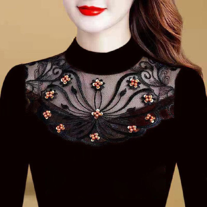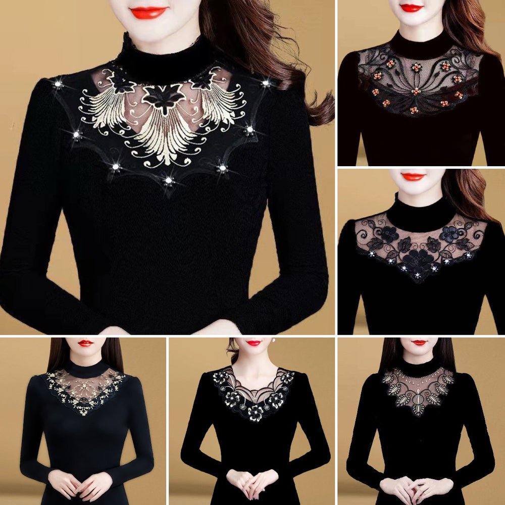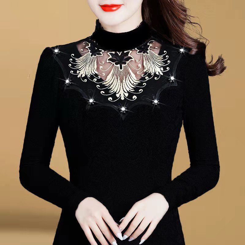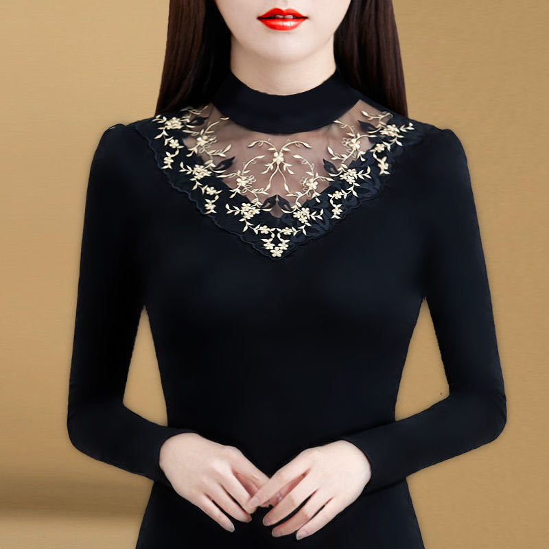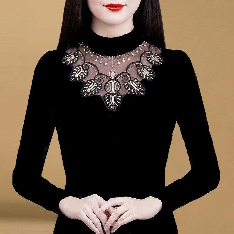 【40-80 кг】Нова есенно-зимна тениска с подплънки и топла дантела