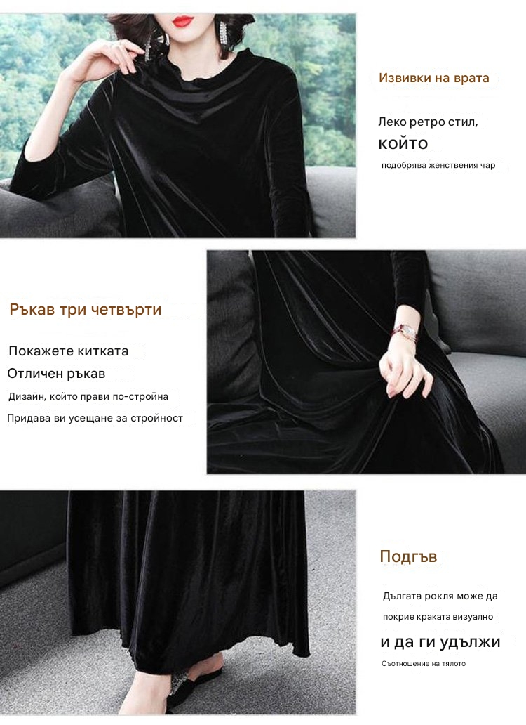 50% ОТСТЪПКА 【M-4XL】Елегантна златна кадифена рокля, излъчваща елегантен чар отвътре навън!