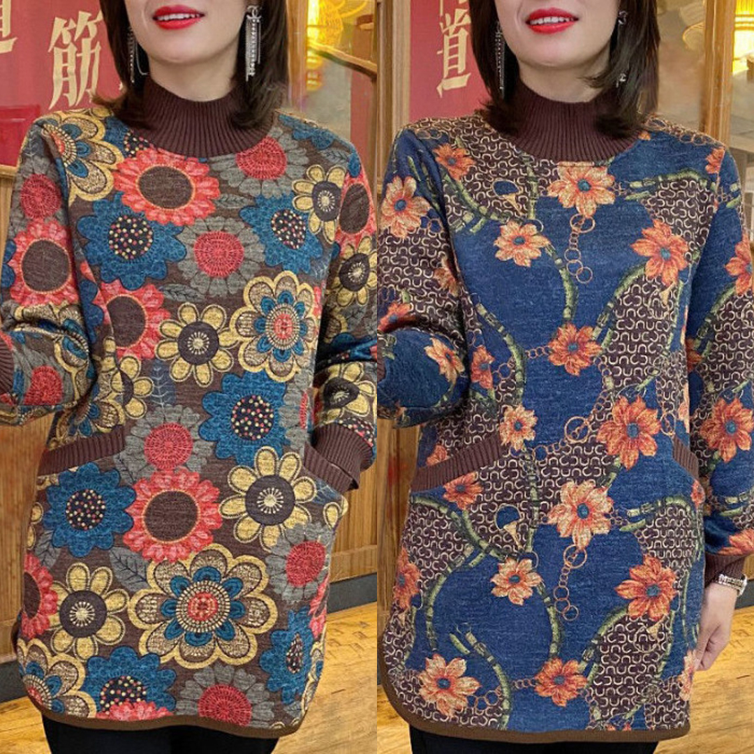 【M-6XL】2025 Есен и зима Ново удебелено кадифено широко кадифено горнище с ретро щампи