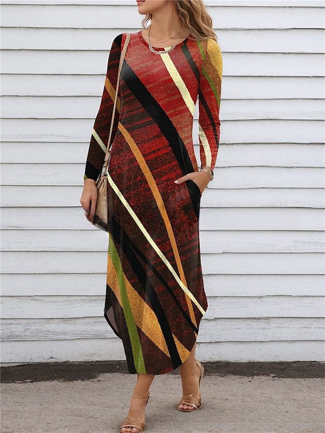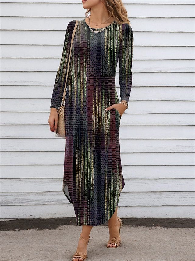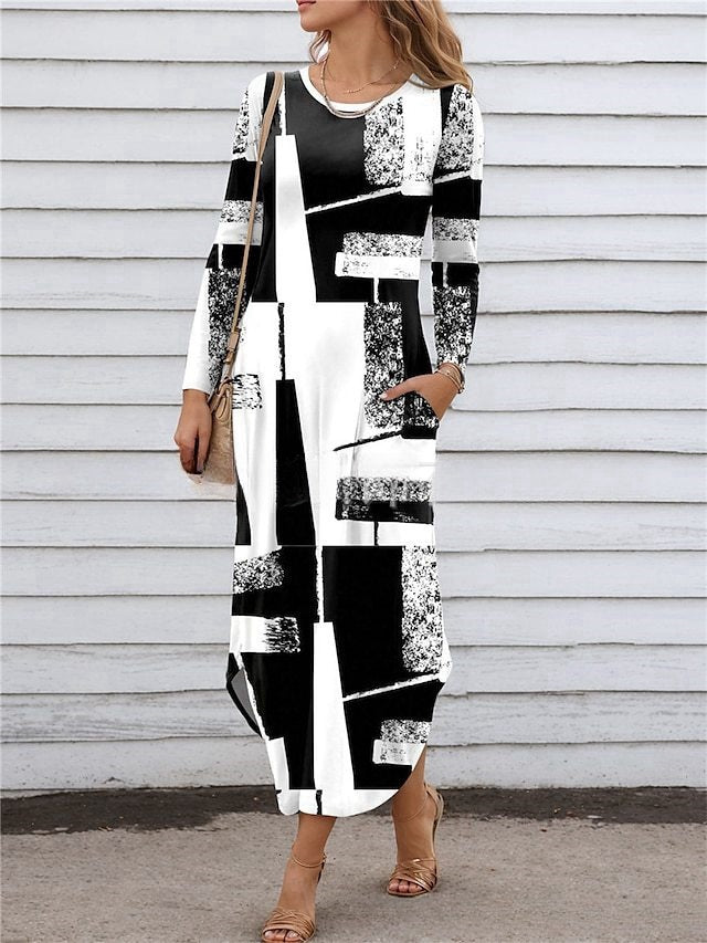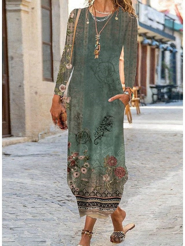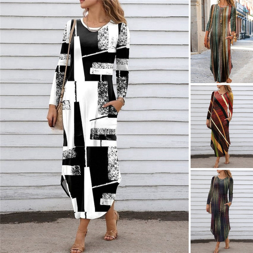 【S-3XL】2025 Нова рокля с джоб с дигитален принт с обло деколте