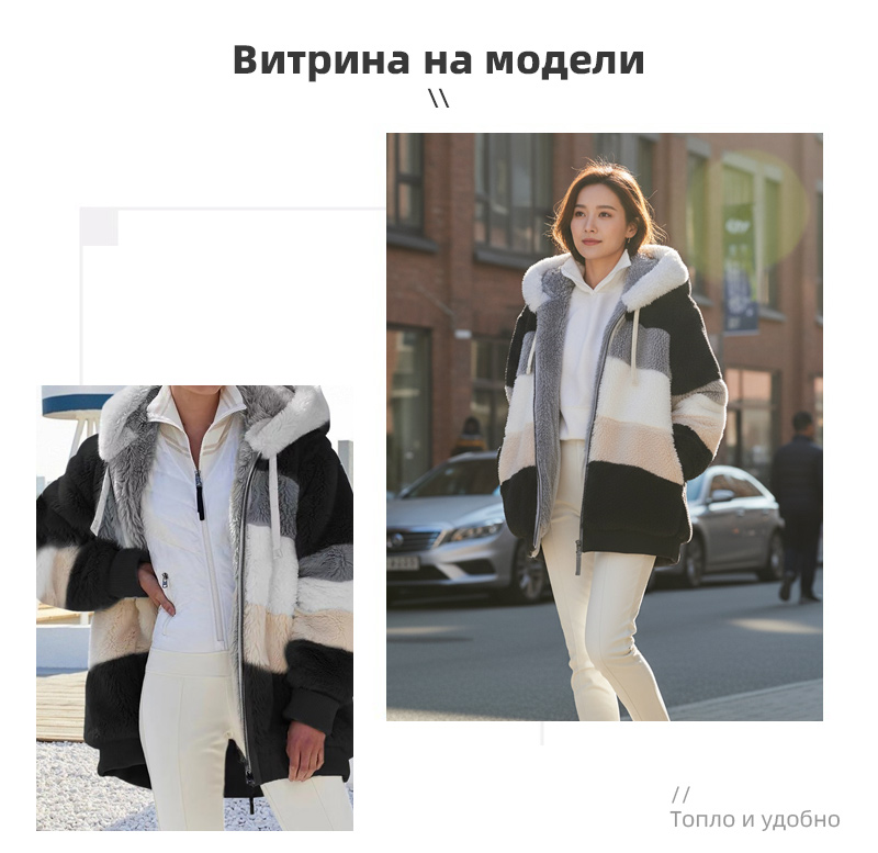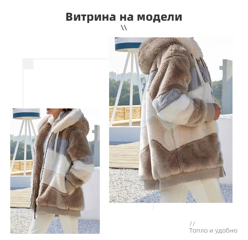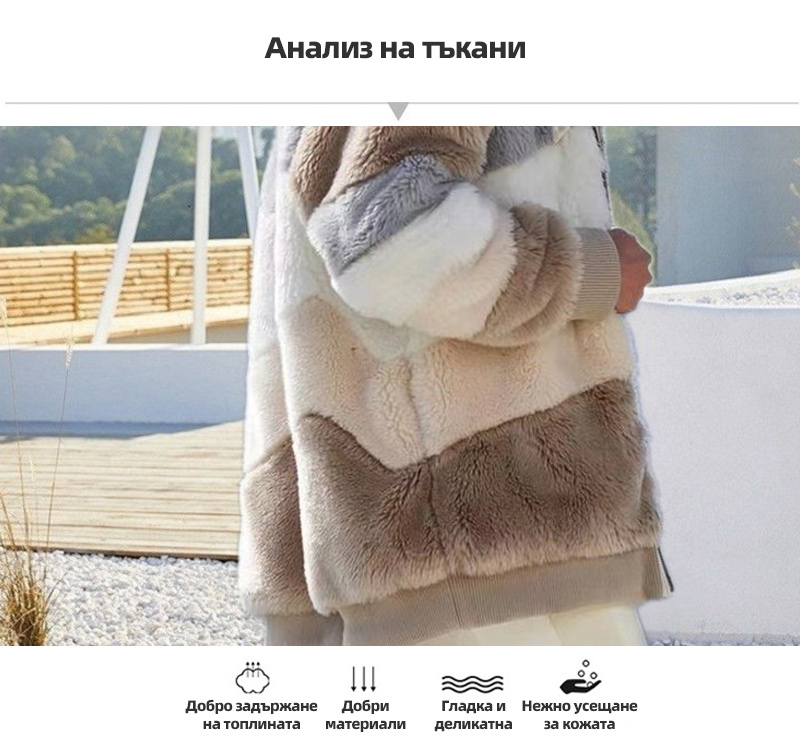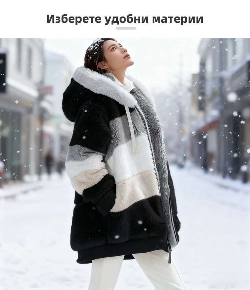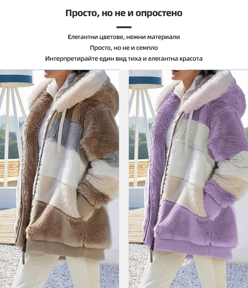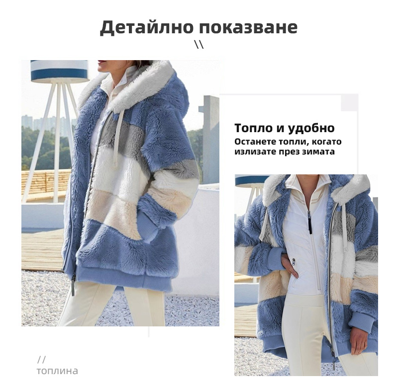 【S-5XL】Широко плюшено яке с качулка и джобове с цип