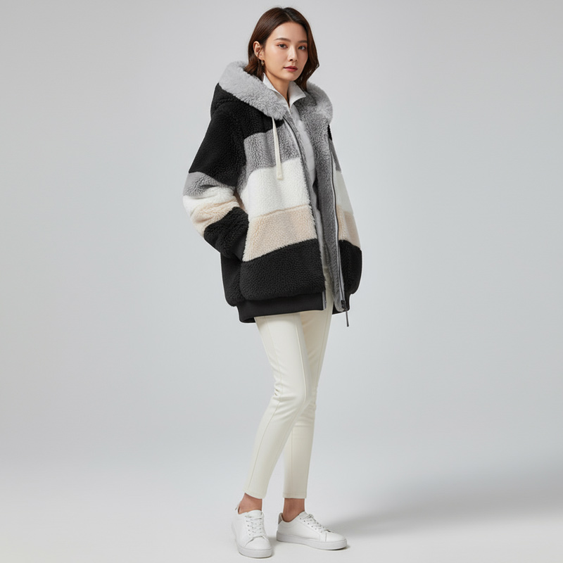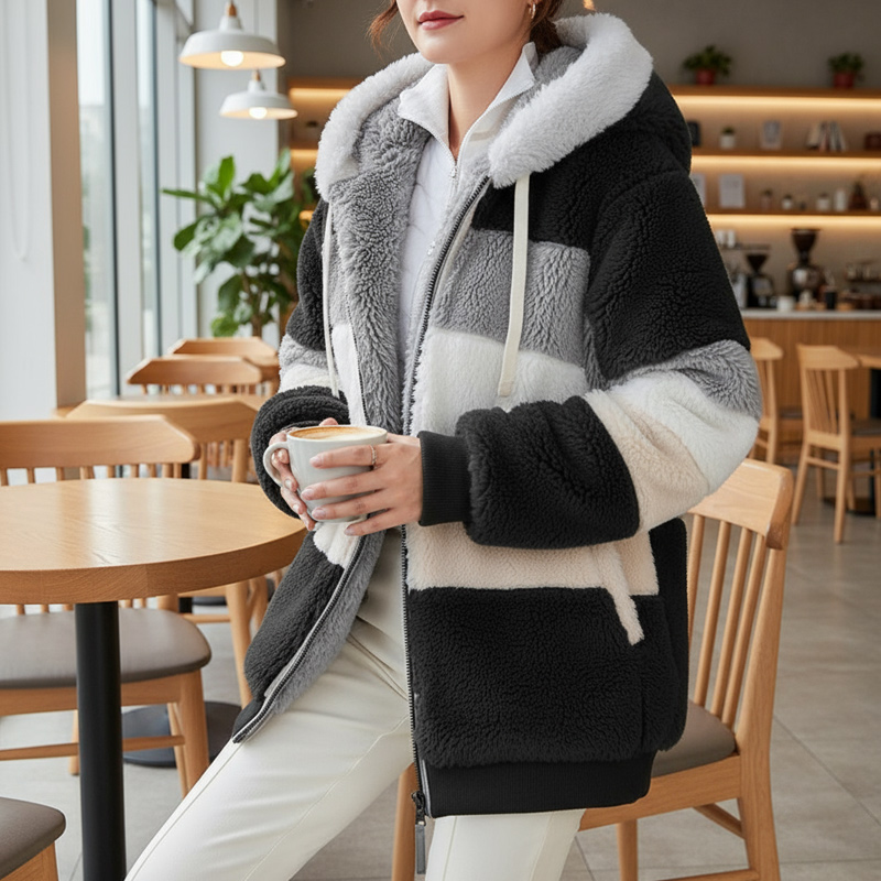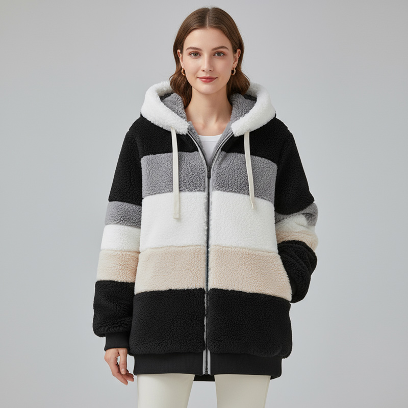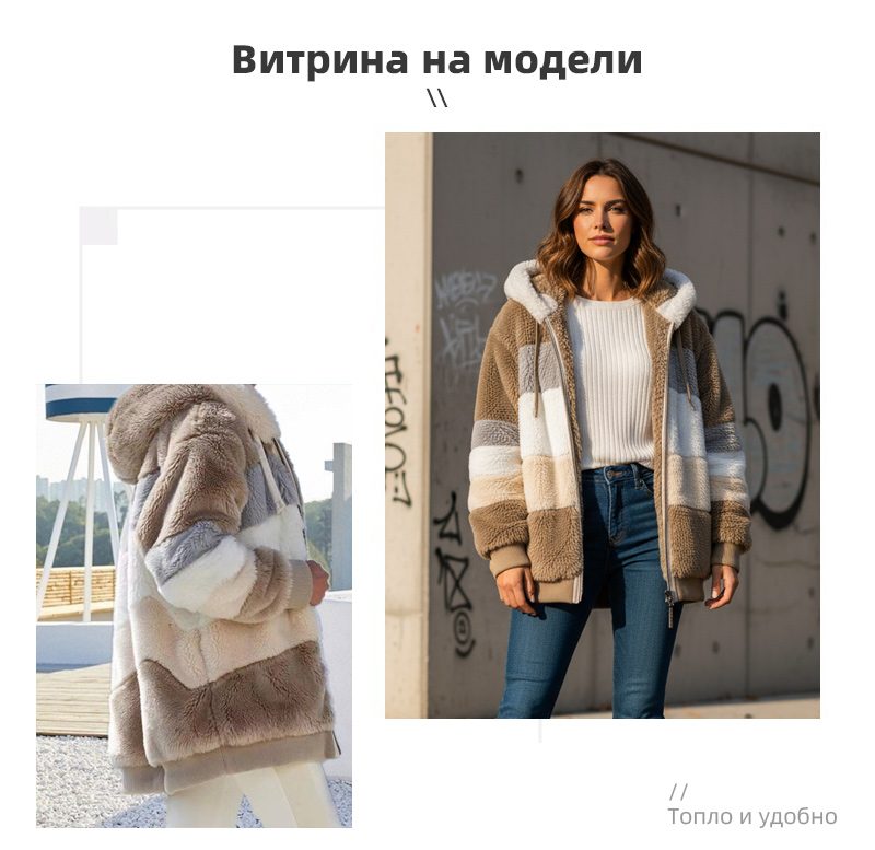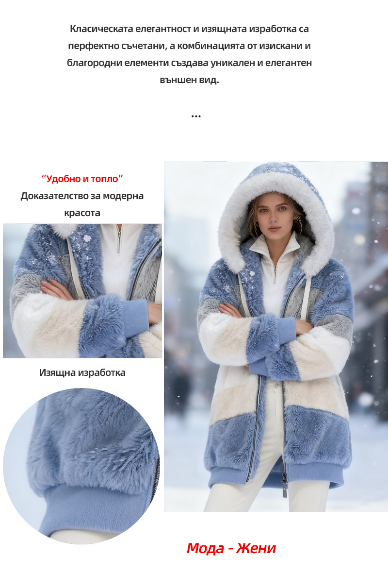 【S-5XL】Широко плюшено яке с качулка и джобове с цип
